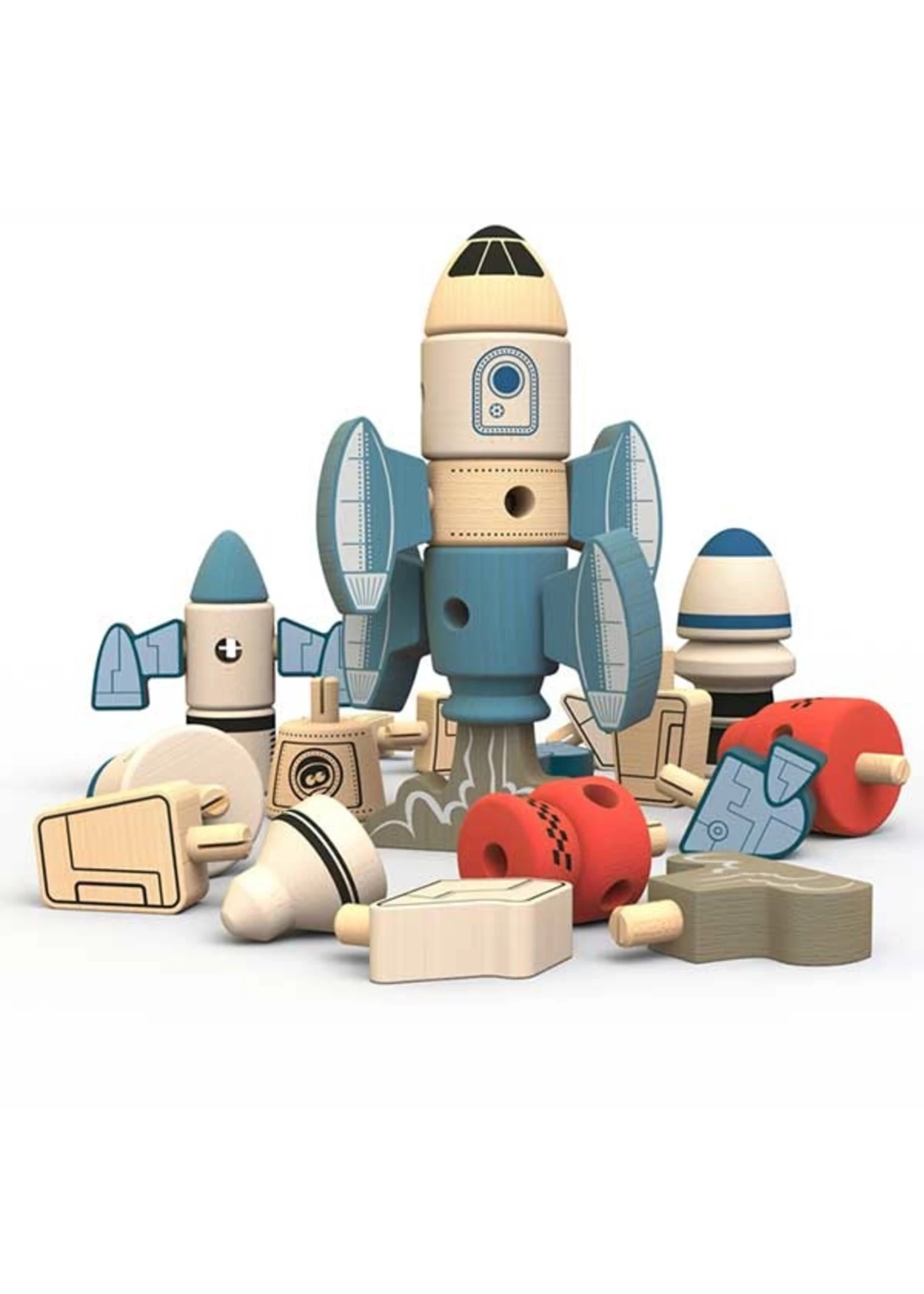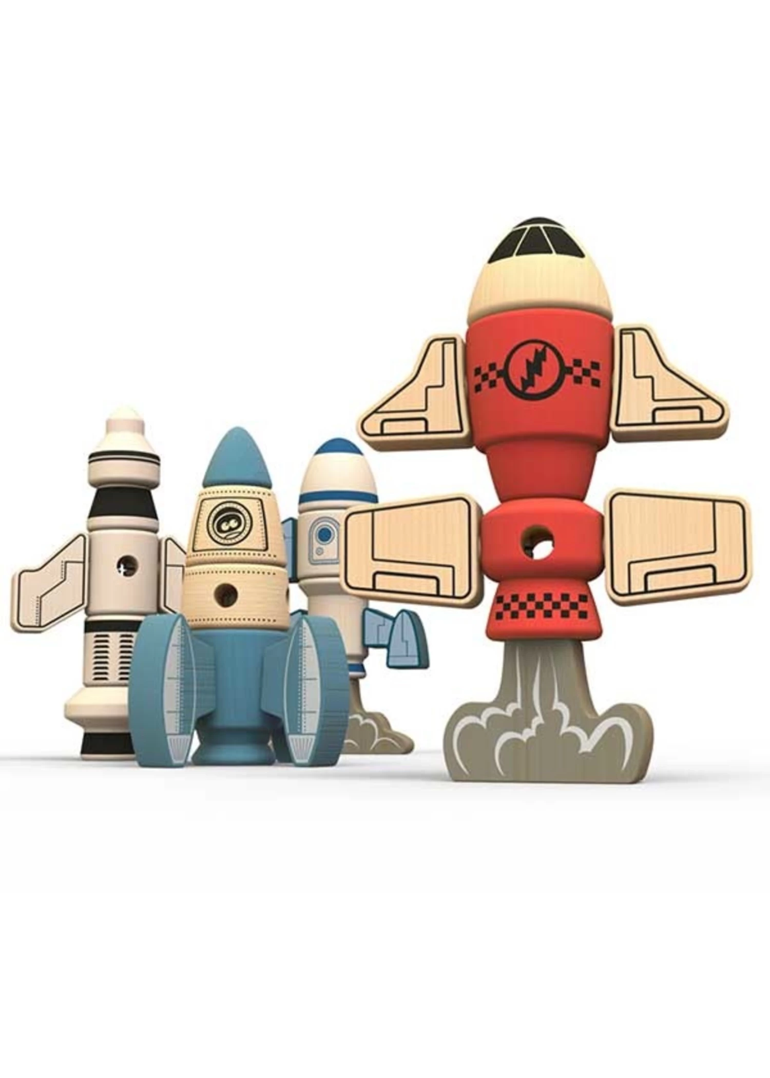 - Stack and connect to create colorful rocket of all shapes and sizes.