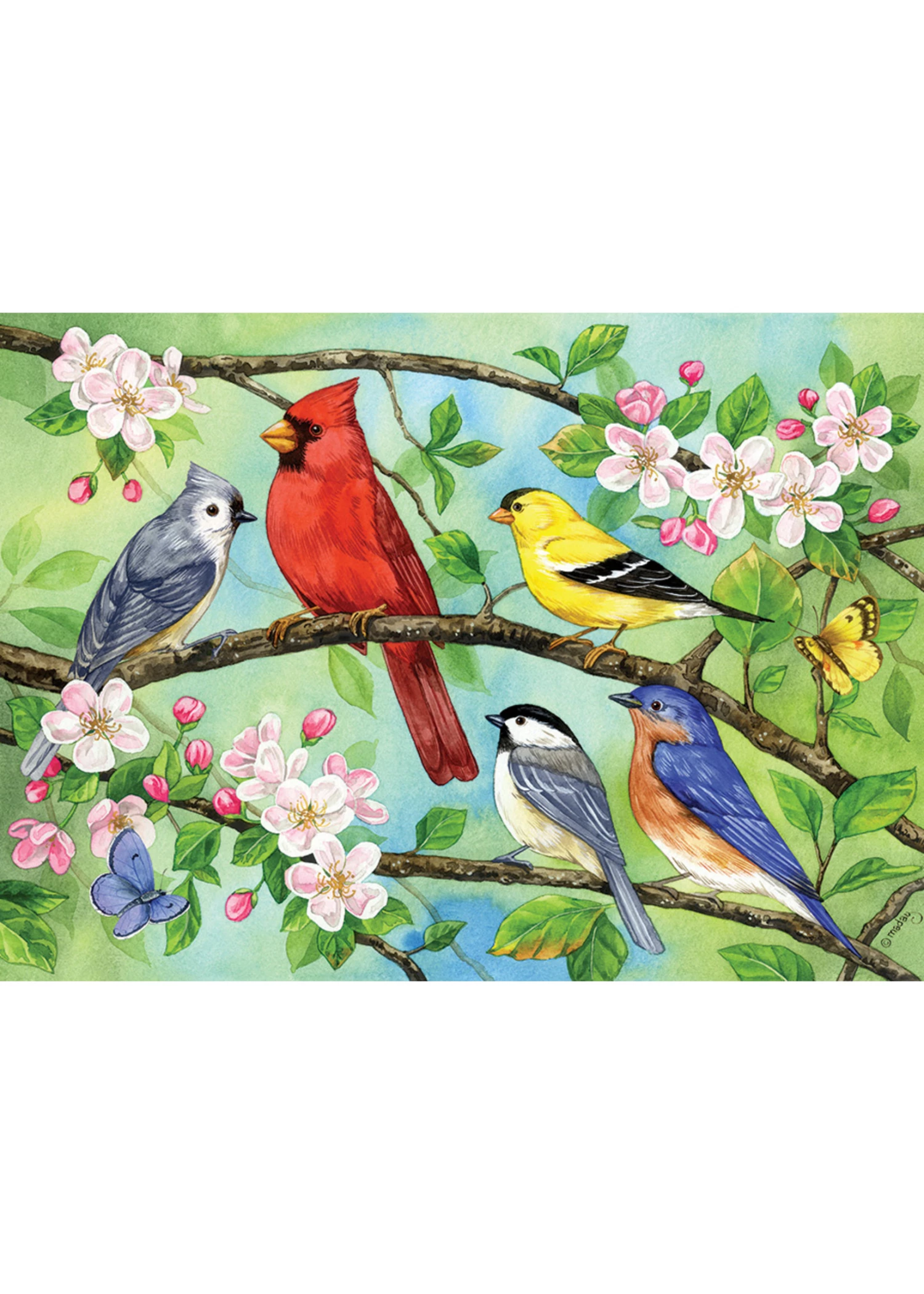 The joy of the chatter as the Bloomin’ Birds sing the praises of the beautiful cherry blossoms in the spring! This fun Family Piece 350 puzzle is a cheerful scene to celebrate the season of flowers.Â