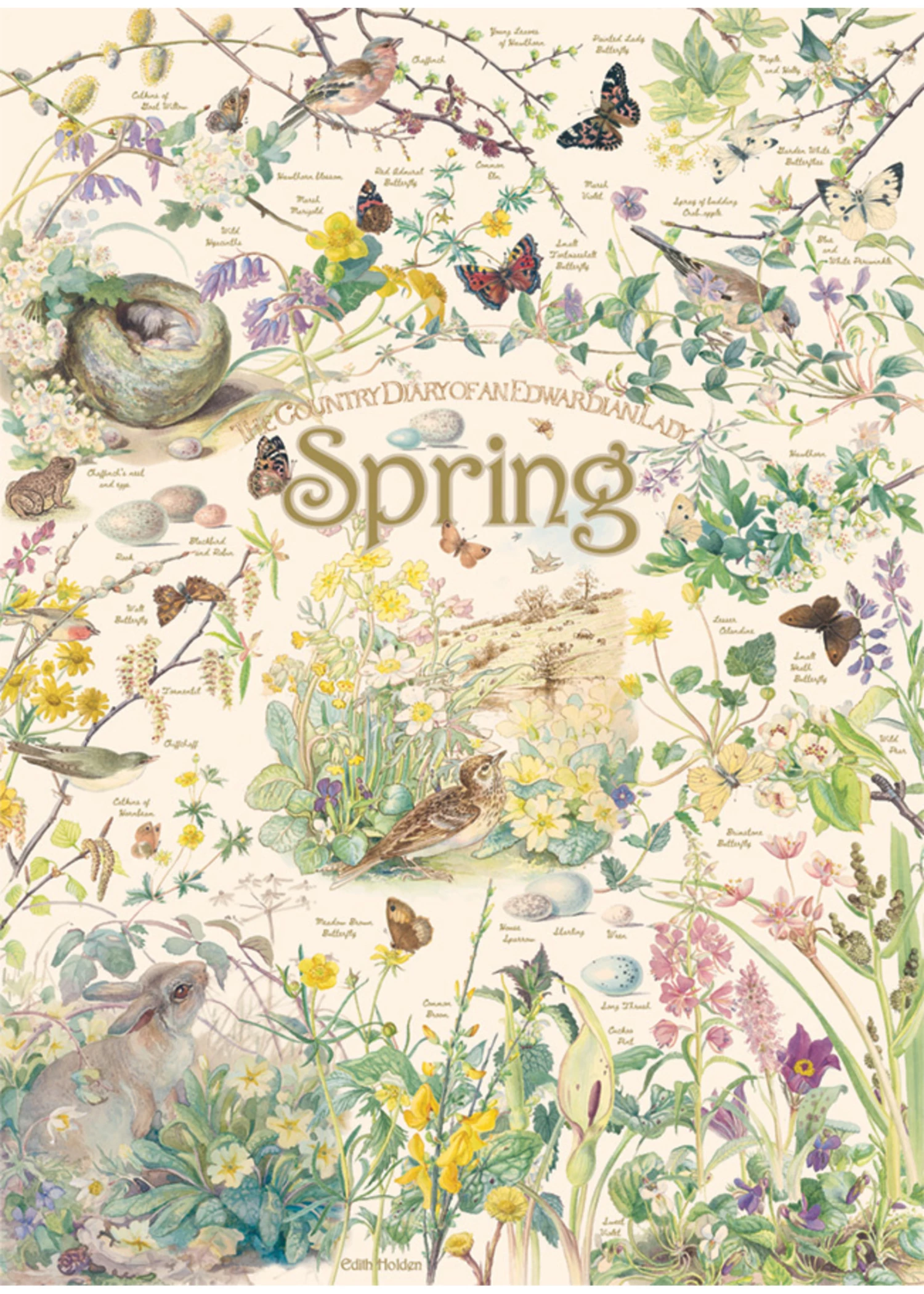 Birds, butterflies, and bunnies come alive in this soft earthy celebration of spring in the 1000 piece puzzle, Country Diary: Spring from the collection of Edith Holden’s ‘The Country Diary of an Edwardian Lady’.