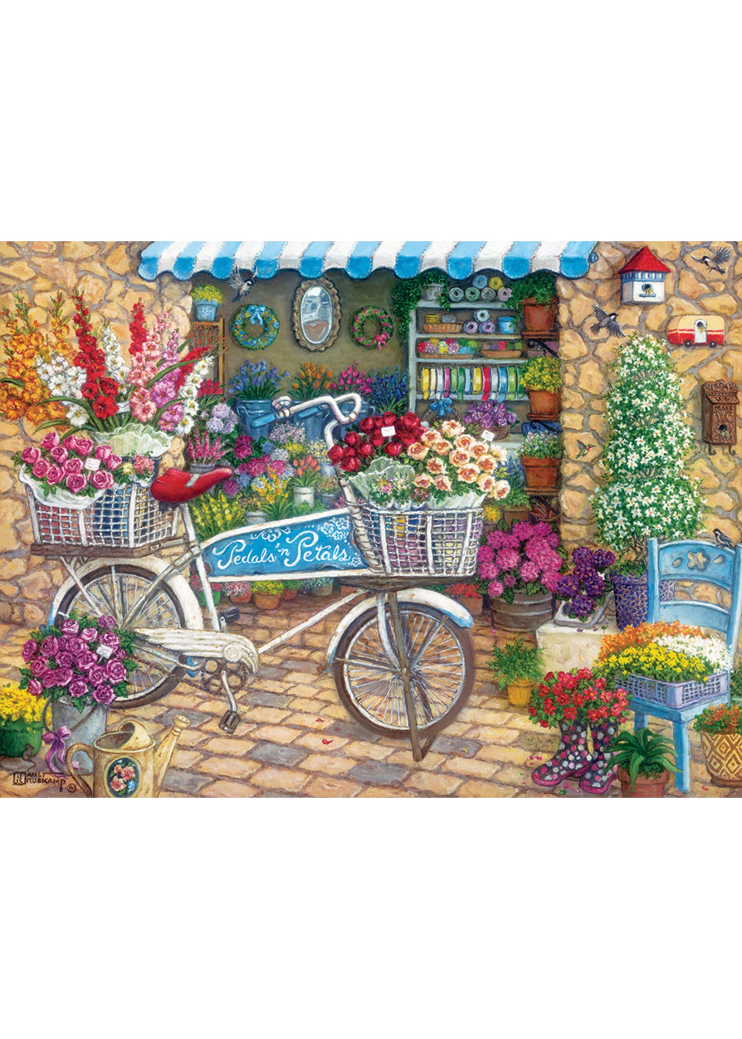 Pedals -n- Petals is an Easy Handling 275 piece puzzle featuring a colourful flower market scene by Janet Kruskamp.