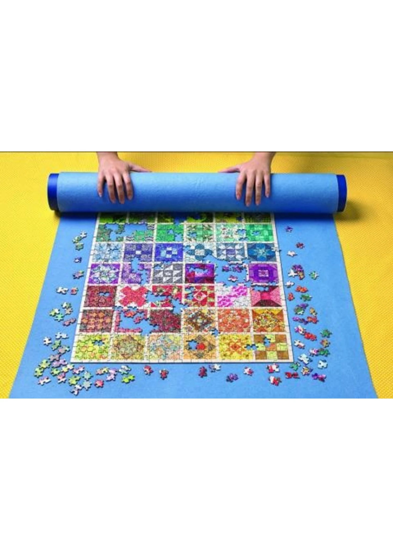 Safely put away your in progress puzzle with Cobble Hill Puzzle Company’s roll away mat. Sturdy “rolling pin” allows the puzzler to easily roll up the mat while all the puzzle pieces remain in place on the mat. When the puzzler is ready to assemble the puzzle again, simply undo the hook and loop straps to unroll the mat and start puzzling! The high quality felt mat is great for assembling the puzzle and keeping pieces from “escaping”. It’s also great for storing the puzzle, as well a rolling it up to travel to another room or place.