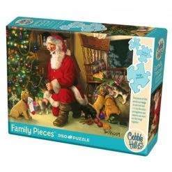 Look what Rufus found hidden under the tree – it’s Santa’s Lucky Stocking! This adorable Family Piece 350 puzzle featuring Santa with all of his cats and dogs is sure to be a delight to families with puzzlers of all skill levels.Â