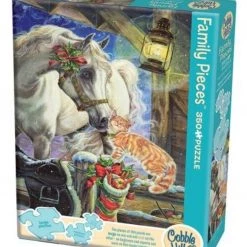Has little tabby cat, Sherbert, come to wish Season’s Greetings to her neiggghhbourhood friend, Gretta the White Horse or is she after some of the carrots in the Christmas stocking? A delightful Family Pieces 350 puzzle.