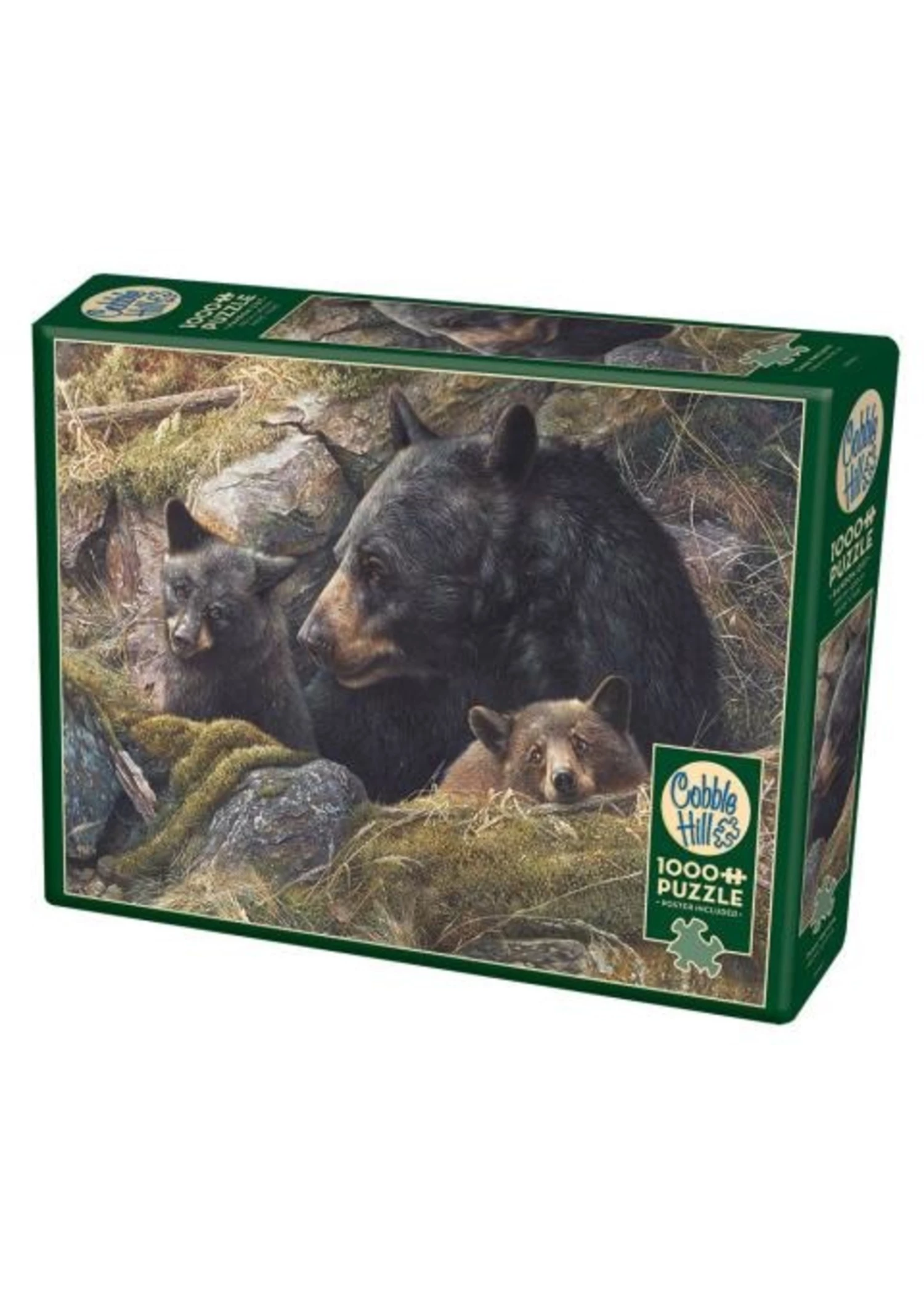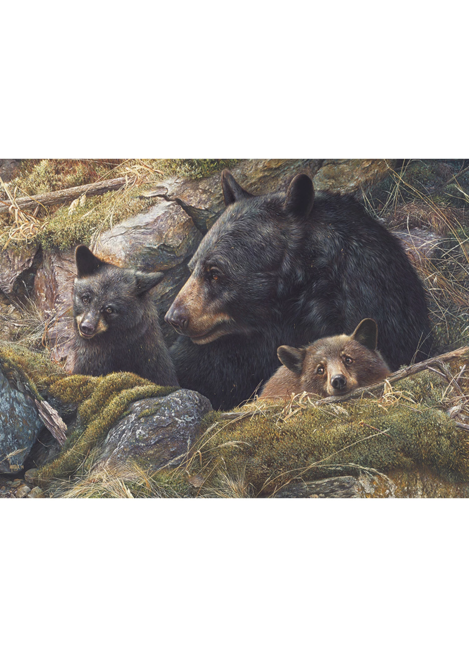 A mother bear receives Twice the Love from her sweet little cubs as they nestle in amongst the rocks. A sweet 1000 piece wildlife puzzle by artist Denis Mayer Jr.