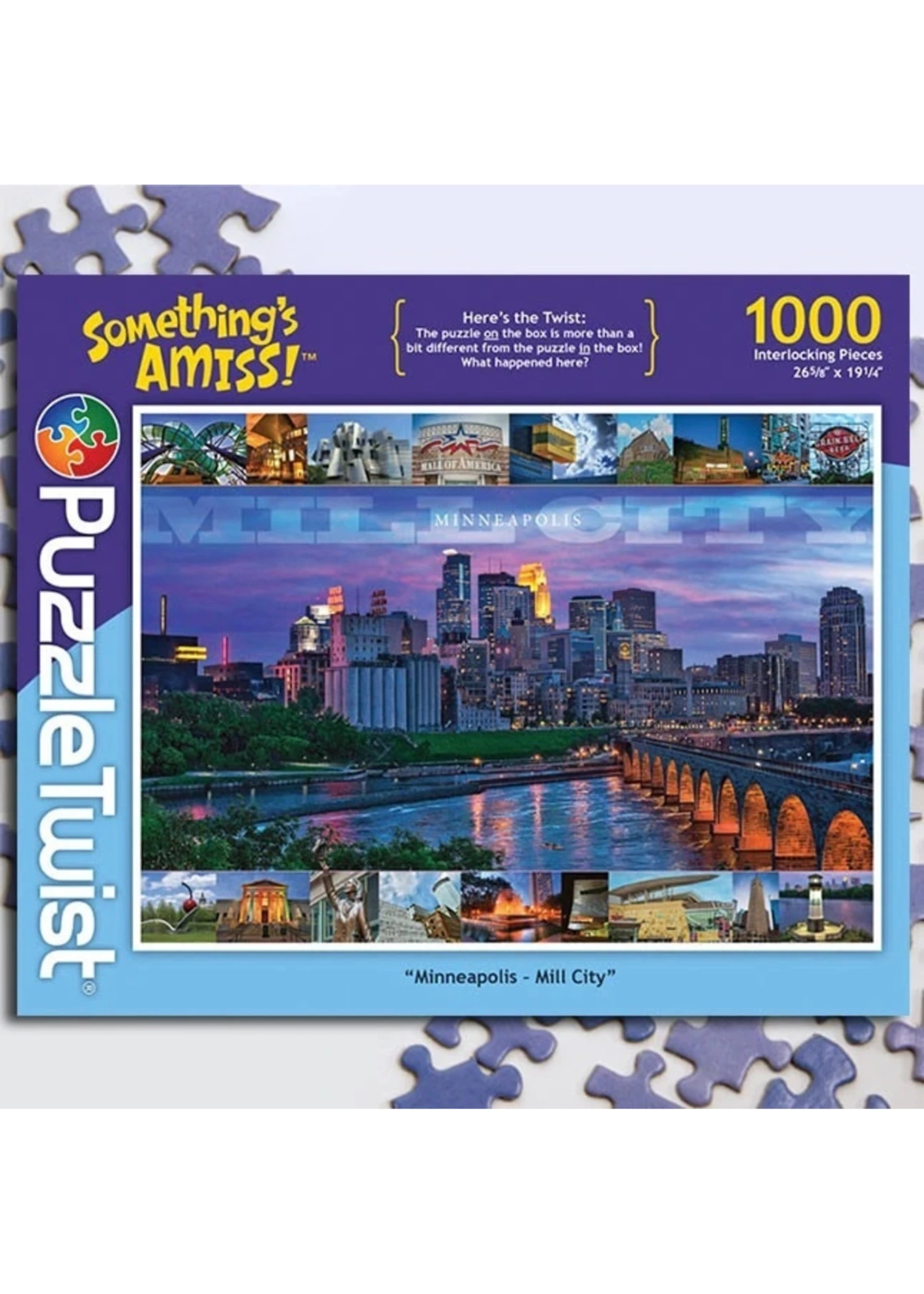 Here’s the twist: The puzzle ON the box is more than a bit different from the puzzle IN the box! Images of the Mill City will come to life with each of the differences you uncover.
