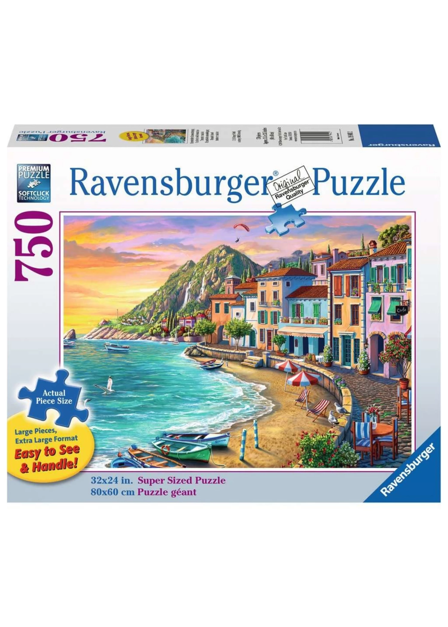 With a wide range of images and designs to choose from, including favorite characters, adorable animals, fantasy images, landscapes, monuments, and more, we’ve got something for everyone. Assemble 750 high-quality pieces to reveal a romantic sunset over an coastal Italian city. Among the most popular piece counts for the avid puzzler, Ravensburger’s 750 piece puzzles are designed to challenge and comfort by creating a difficult but more satisfying-than-frustrating experience.