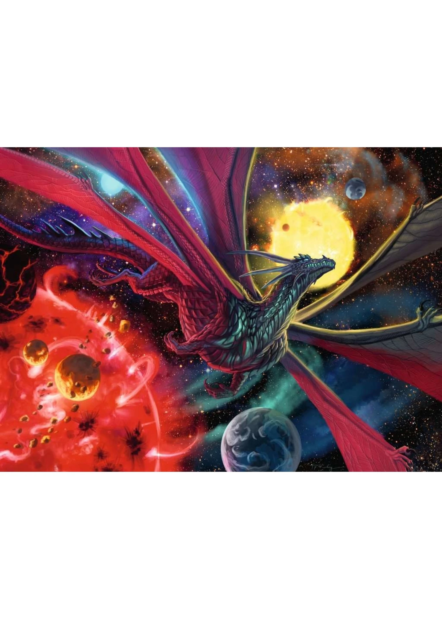 Star Dragon’s home planet, the Red Giant star known as Aetherasteri, has exhausted its core supply of hydrogen and has begun thermonuclear fusion — her planet is dying and will soon engulf the surrounding planets! Her family has perished, and Star Dragon must flee the imminent implosion of the only home she’s ever known. But as she makes her desperate journey through space, she carries with her hope for her kind — a dragon egg! Where will she go next? Have fun imagining and puzzling it out!