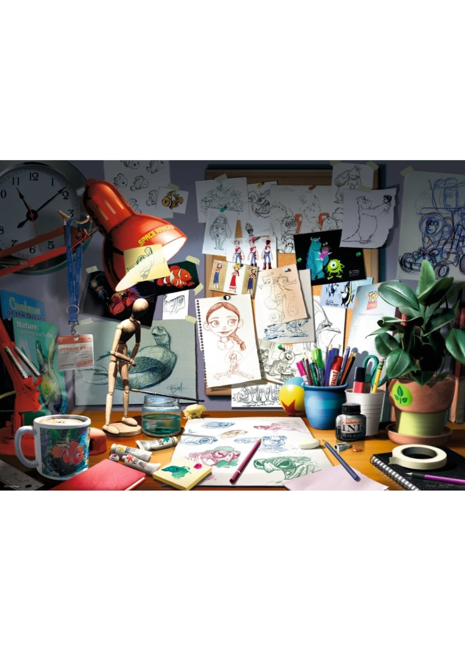 Draw on your artistic side and imagine the fun of creating memorable characters for Disney Pixar while piecing together “The Artist’s Desk” puzzle!